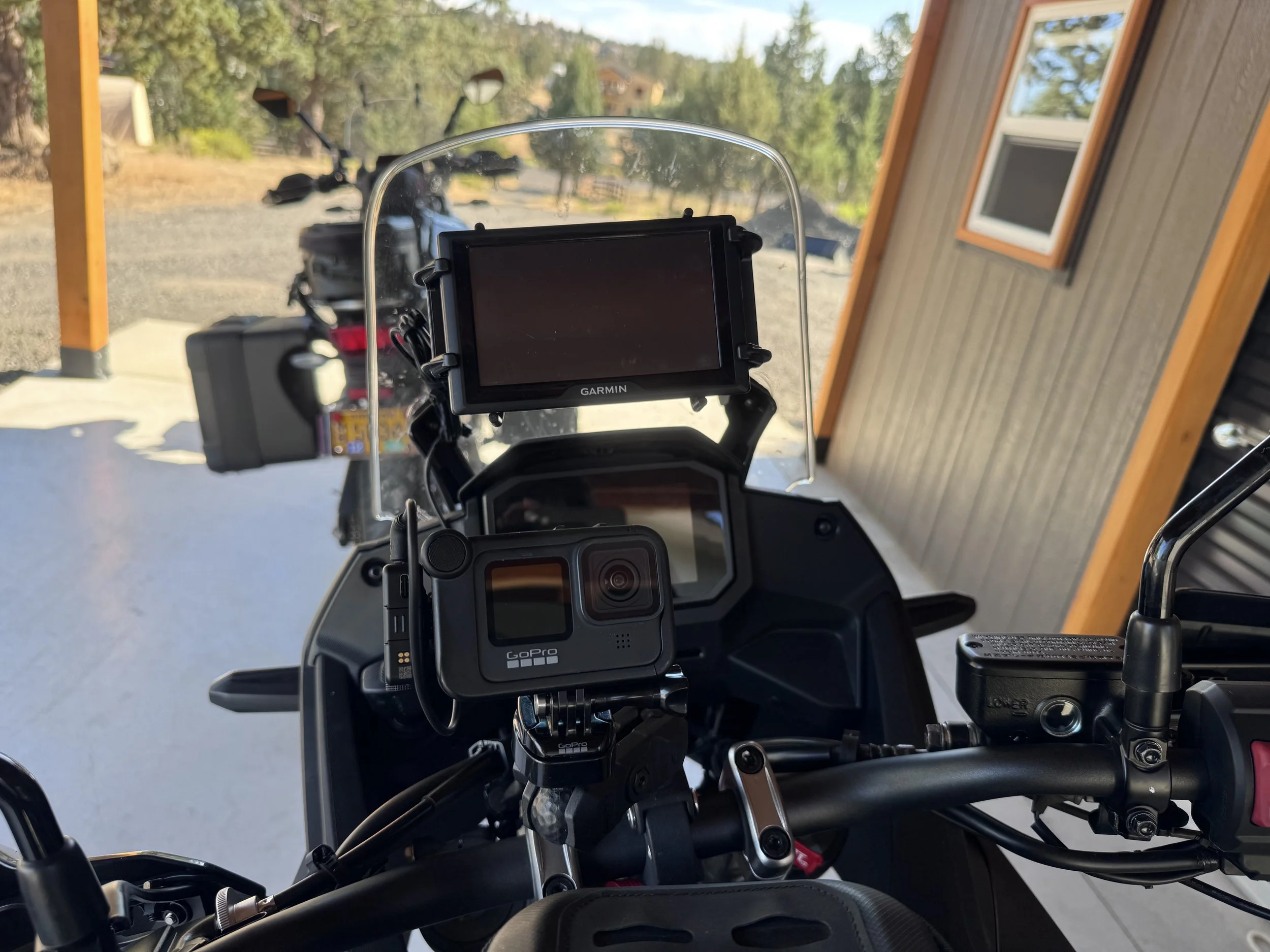There is always a need to have a phone mount and or a GPS mount for any longer ride. John chose this simple mounting bracket off of Amazon to hold the Garmin and GoPro when needed.