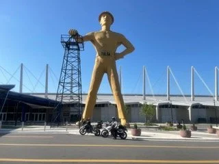 On to the Biggest, Hugest, most Giantest GIANT: The Golden Driller! At 43,500 pounds and 76 feet tall, he is by far the largest giant we will see.